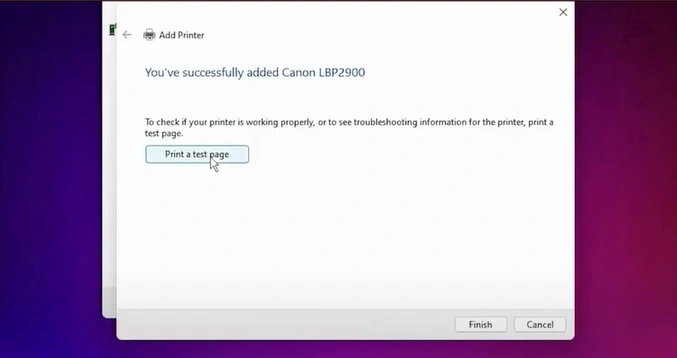 36. Then, click on Print a test page or the Finish option.
