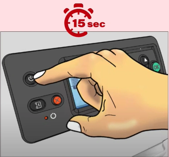 3. Now, you need to press and hold the printer’s power button for 15 seconds. (Note- The printer should be directly connected to the wall socket and not to a surge protector.)