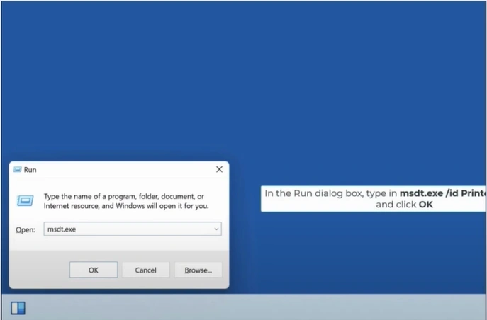 2. In the open field, enter “msdt.exe/id PrinterDiagnostic.”