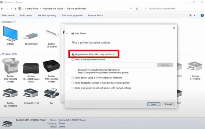 12. Select “My printer is a little older. Help me find it”, then click on Next.