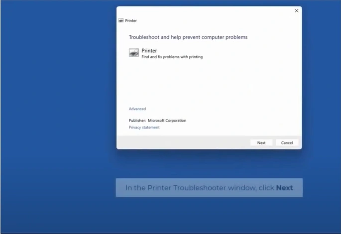 4. In the “Troubleshoot and help prevent computer problems” page, click on Next.