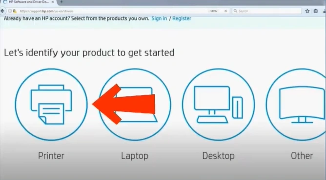 Step 1: Open your browser and go to the HP Support page.