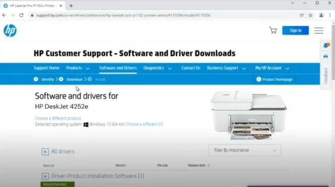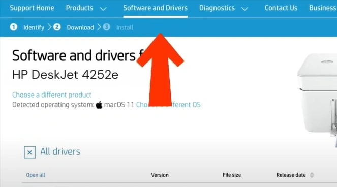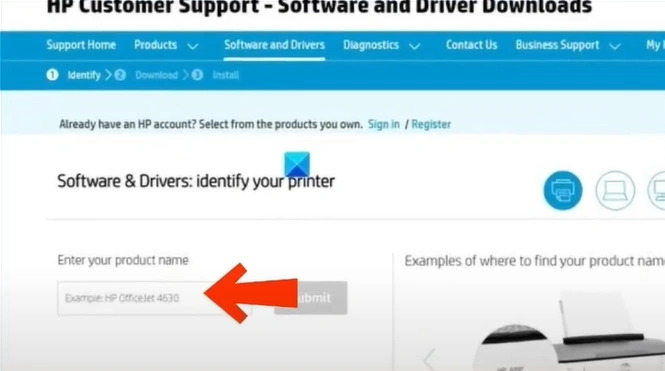Step 4: On the next page, type “HP DeskJet 4252e” in the search box and click Submit.