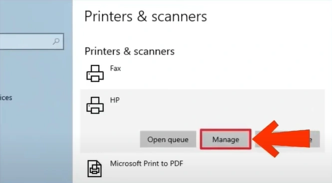 Step 4: Scroll back up, select your printer from the list, and click “Manage.”