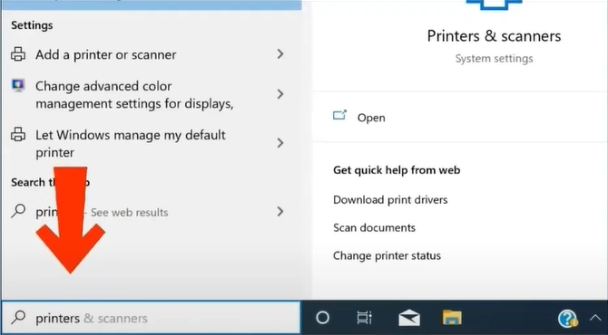 Step 2: In the search bar, type Printers & scanners and click on “Open.”