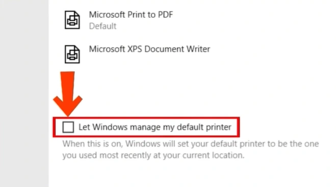 Step 3: Scroll down the page. Uncheck the “Let Windows manage my default printer” option.