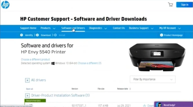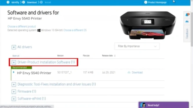 Step 9: Under Driver-Product Installation Software, click on Download and install the driver.