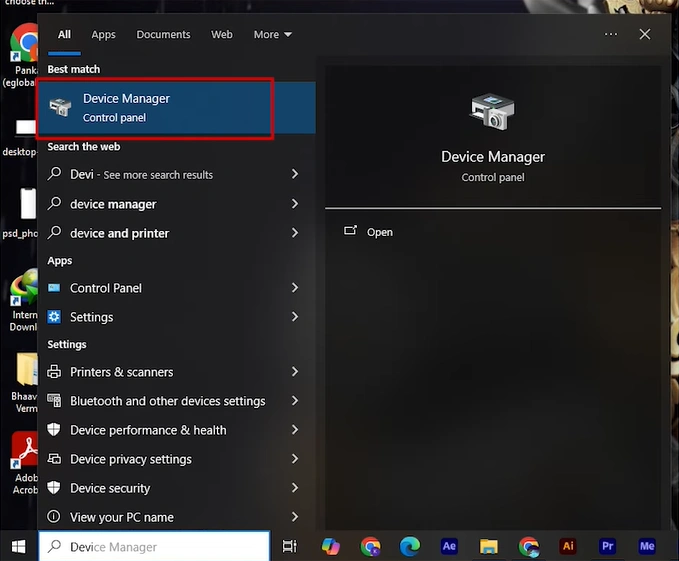 Step 1: Search for Device Manager in the search bar and open it.