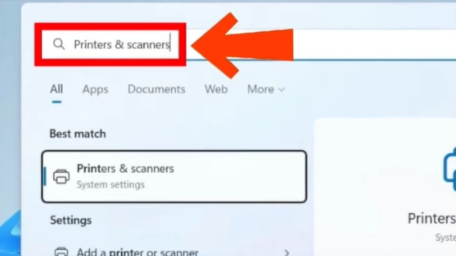Step 2: Search for Printers & scanners, then open it.