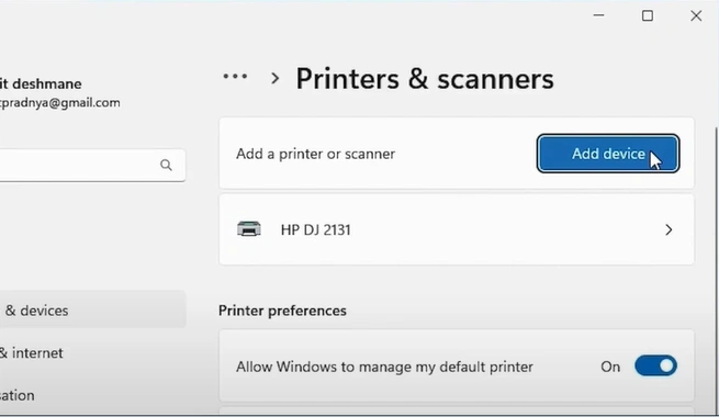 20. Next, to "Add a printer or scanner," click on the Add device button.
