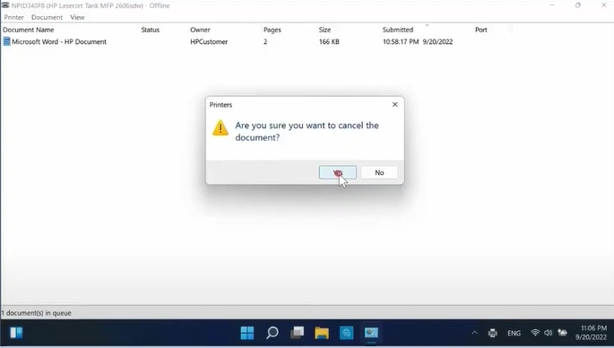 3. Click on the Printer tab and select Cancel All Documents, then click on Yes.