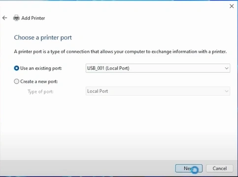 24. Select the “USB_001” from the drop-down. (Note- Select com4_001or any HP port option if the USB option is unavailable.)