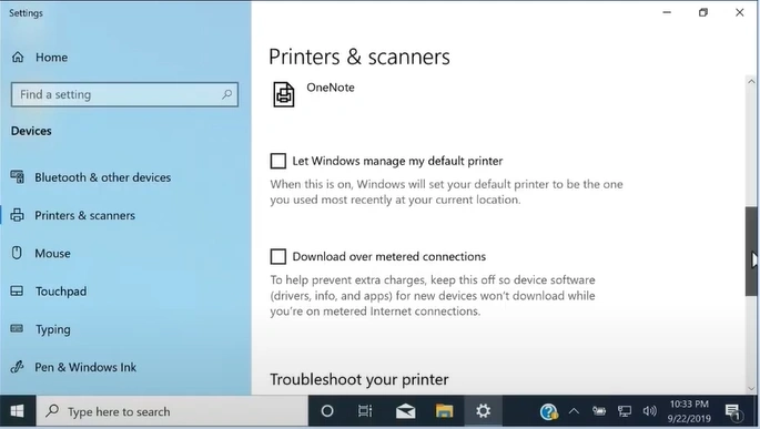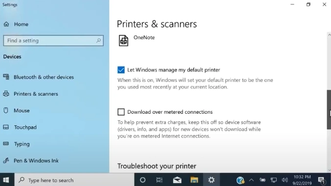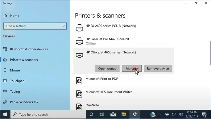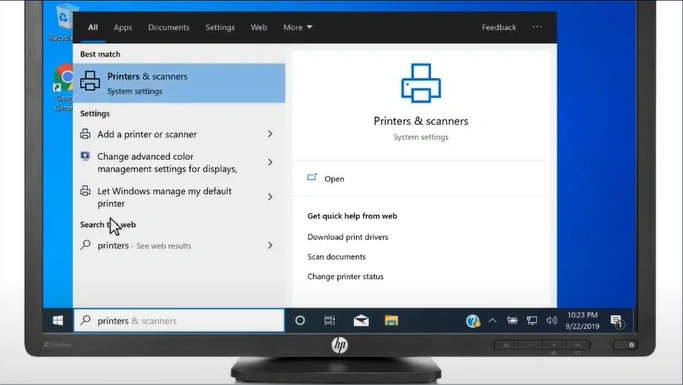 19. Open the Start menu, then search and open “Printers and scanners.”