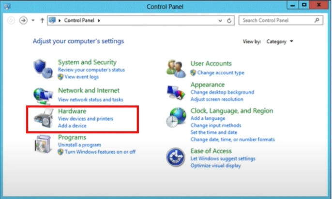1. Open the Control Panel and click on the "View devices and printers" option.