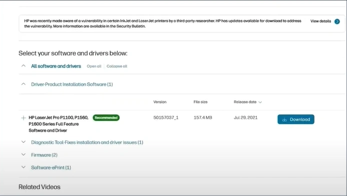 13. Next, scroll down and expand the Driver-Product Installation Software.
