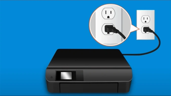 12. Insert the power plug of the printer back into the outlet. (Note- Ensure that the printer has remained without power for at least 60 seconds.)
