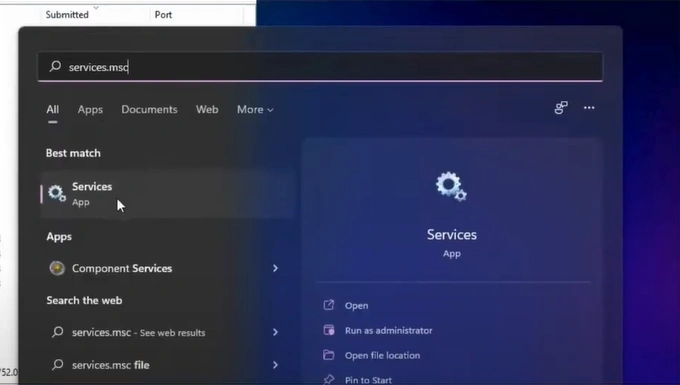 3. Then, on your PC, click on the search icon and enter "services.msc," and search.