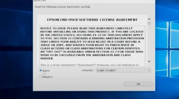 10. Review the end-user software license agreement, select Agree, and click OK.