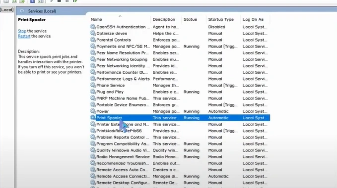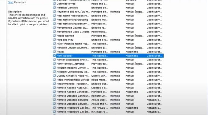 2. Scroll and find the print spooler.