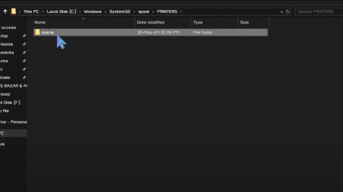 7. Delete all the files and folders permanently inside the "Printers" folder.