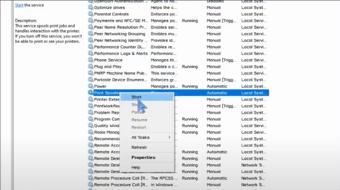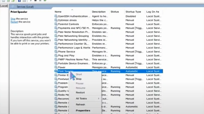 3. You should right-click on the print spooler and select Stop.
