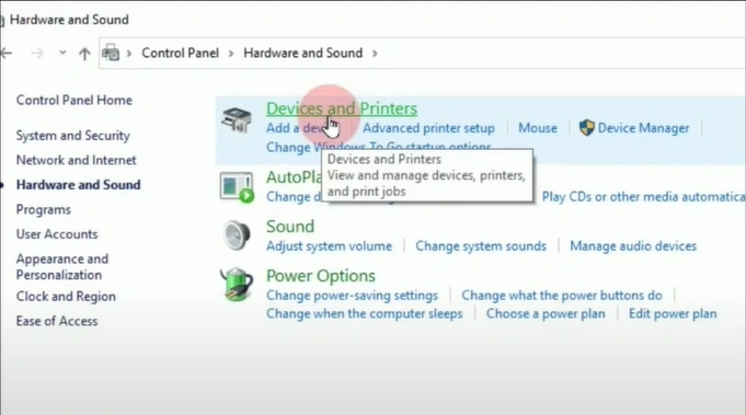 3. Click on the Devices and Printers option.