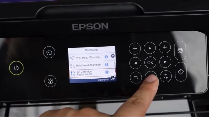 5. Scroll and select the "Ink Cartridge Replacement" to make the printhead move into the replacement position.