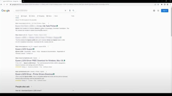 6. Open your web browser, search for the Epson printer XP-4100 driver, and then open the website.