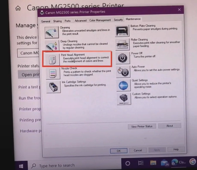 8. Click on Print Head Alignment.