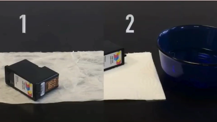 1. Gather a bowl of warm water, your ink cartridges, and a try pepper towel.