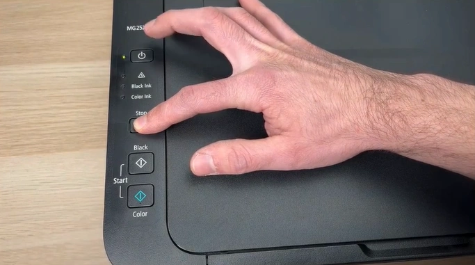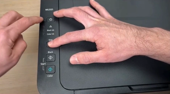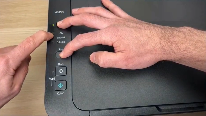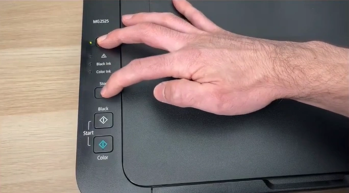 1. Keep the printer Off, then press the ON and STOP buttons together for 5 seconds.