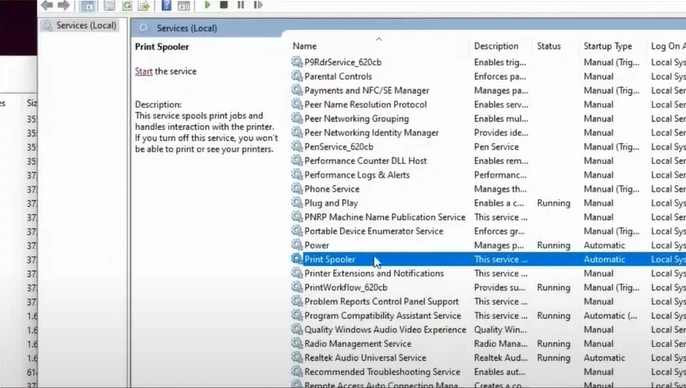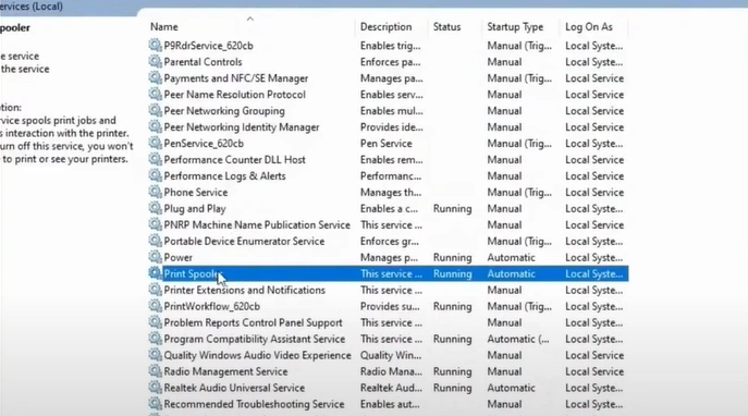3. After that, scroll and find Print Spooler.