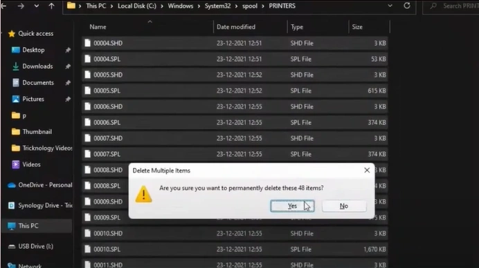 7. Open the “System32” folder, double-click on the “Spool” folder, then open the “PRINTERS” folder.