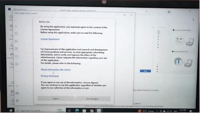 18. Once the app is opened, review the Before Use content and click on Agree.