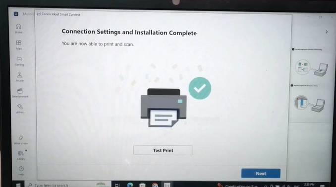 32. Once the connection settings and installation are completed, click on Next. (Note- click on Test Print or manually run a test print.)