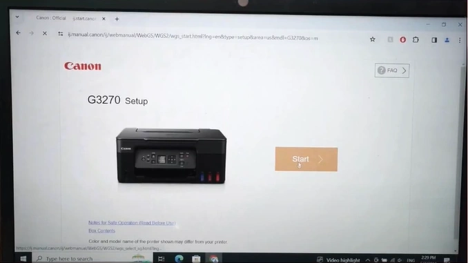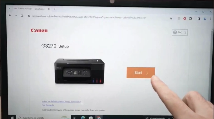 12. Open your browser and search for “https://ij.start.canon/G3270.”