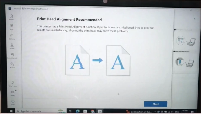 31. In the Print Head Alignment Recommended page, click on Next.